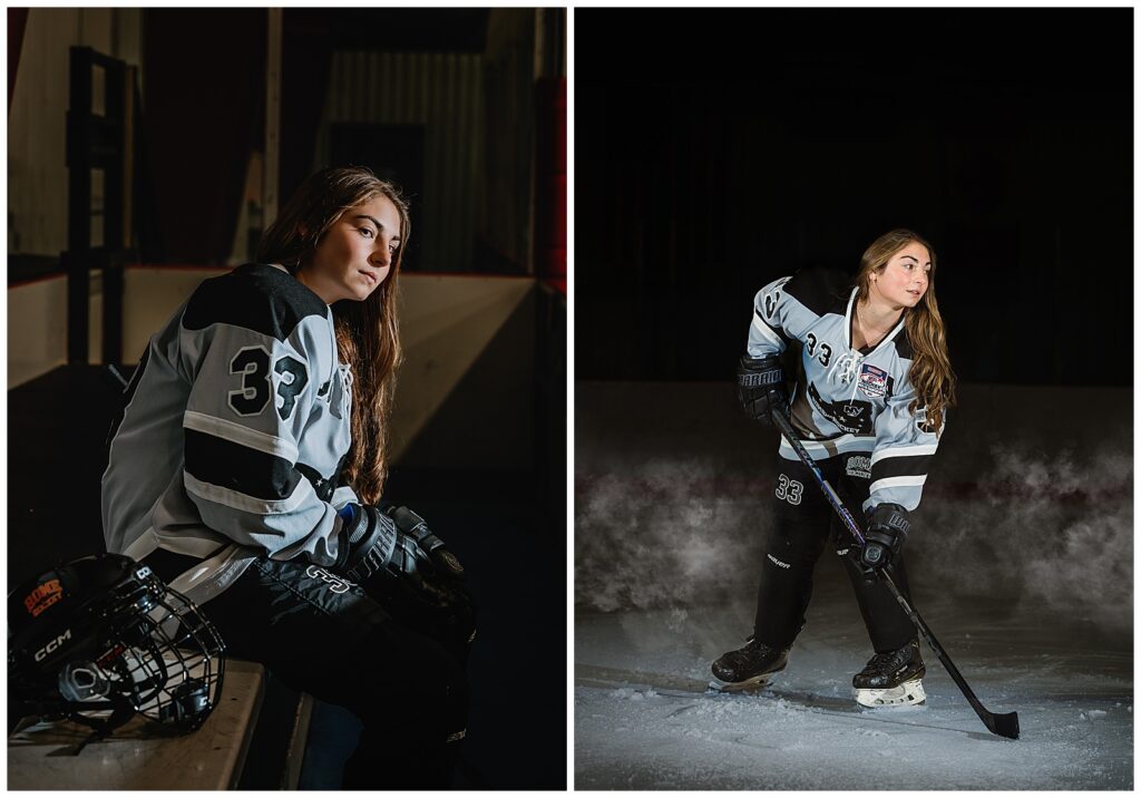 Hockey is not just a winter activity—it is a commitment, a discipline, and often a defining part of a student’s high school experience. From early morning practices to late-night games, the rink becomes a second home. Including hockey gear, uniforms, or even dramatic on-ice portraits in senior photos honors that dedication and preserves it as part of the senior legacy.